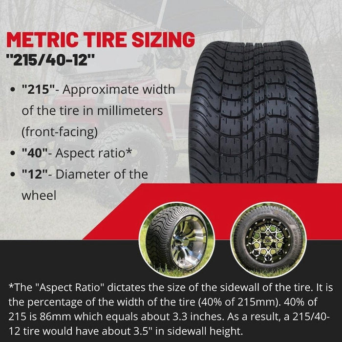215/40-12  Golf Cart Tires Specs  - 19" tall overall height