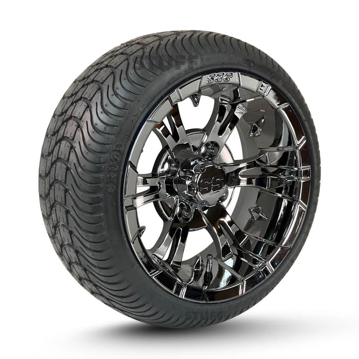 12" Vampire Chrome Golf Cart Wheels and DOT Approved Street Turf Tires Combo - Set of 4