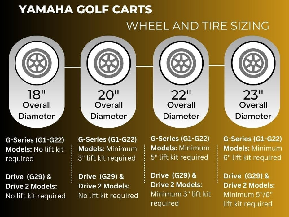 *Quick rough math: a stock cart will accept 20" tires, so adding a 4" lift kit should have no issue accepting 23" tall tires