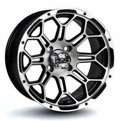 Sale14" Spyder Black / Machined Golf Cart Wheel - 14"x7" ET-25 Offset⎮GTW®