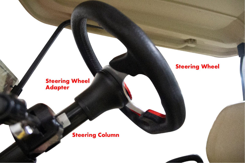 Not only are golf cart steering wheels some of the coolest accessories around, they are also some of the easiest to install! When purchasing a new steering wheel for your EZGO, Club Car, or Yamaha golf cart, it will be necessary for you to purchase the corresponding adapter. The adapter is the equipment that allows your new steering wheel to fit onto your cart's steering column. Let's walk through some of the installation processes below: