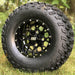 10" Matrix Gloss Black Aluminum Golf Cart Wheels and 22x11-10 Backlash All Terrain Off Road Golf Cart Tires Combo - Set of 4