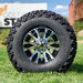 10" Venom Aluminum Black/ Machined Aluminum Golf Cart Wheels and 22x11-10 DOT All Terrain Tires Combo - Set of 4