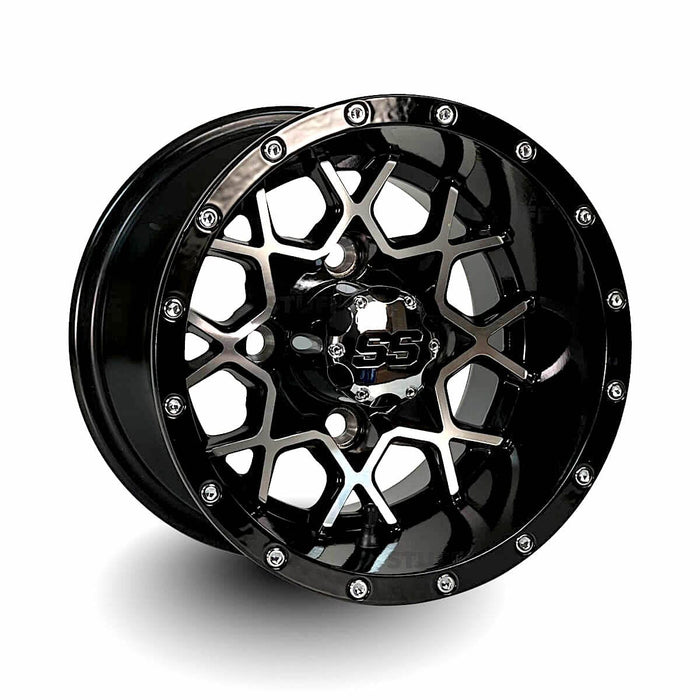 10" Matrix Black/Machined Golf Cart Wheels - 10"x7" ET-15 Offset