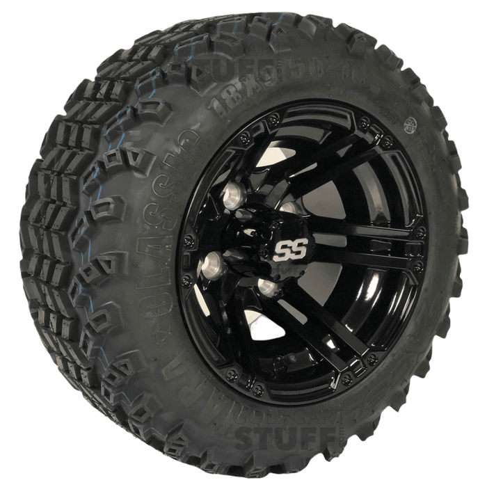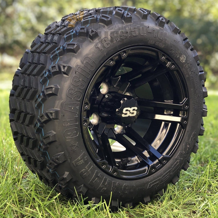 10" Terminator Gloss Black Golf Cart Wheels and 18" All Terrain Golf Cart Tires Combo - Set of 4 - 18" Tall (Fits all Carts!)