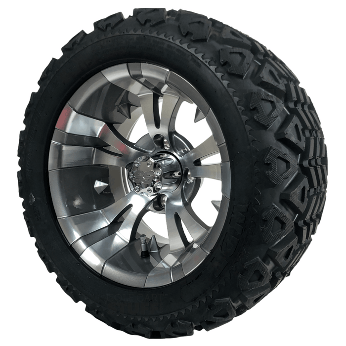 12" Vampire Gunmetal/Machined Aluminum Golf Cart Wheels and 20x10-12 Wanda DOT All Terrain Golf Cart Tires - Set of 4