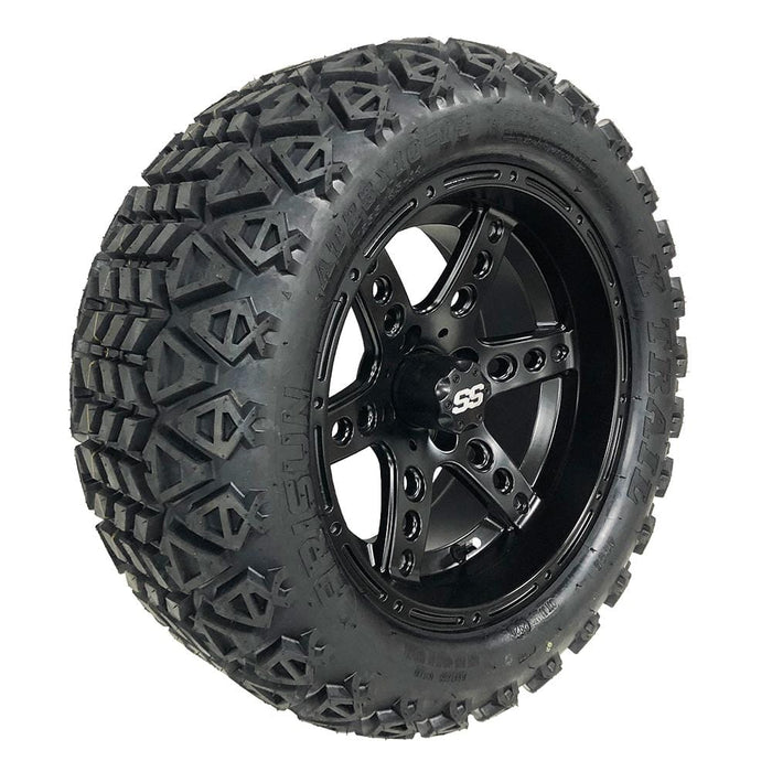 14" Dominator Matte Black Aluminum Golf Cart Wheels and 23x10-14 DOT All Terrain Off-Road Golf Cart Tires Combo - Set of 4 (Choose your tire!)