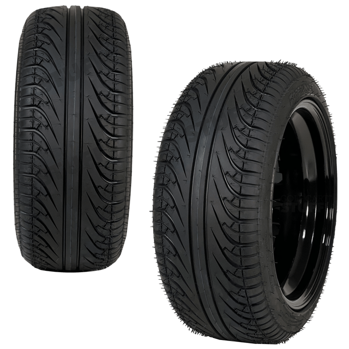 14" Godfather Gloss Black Aluminum Golf Cart Wheels and 205/30-14 Low-Profile DOT Street & Turf Tires Combo - Set of 4 (Select your tire!)
