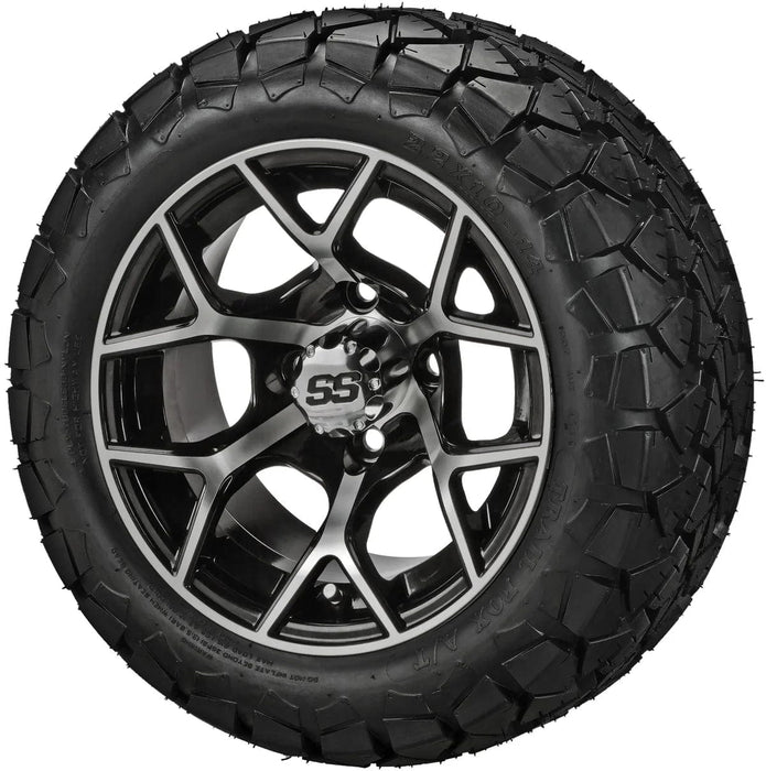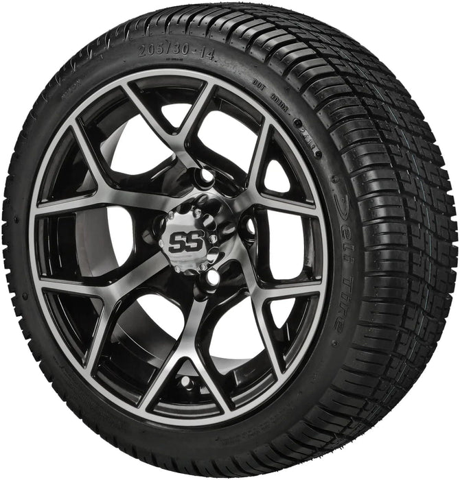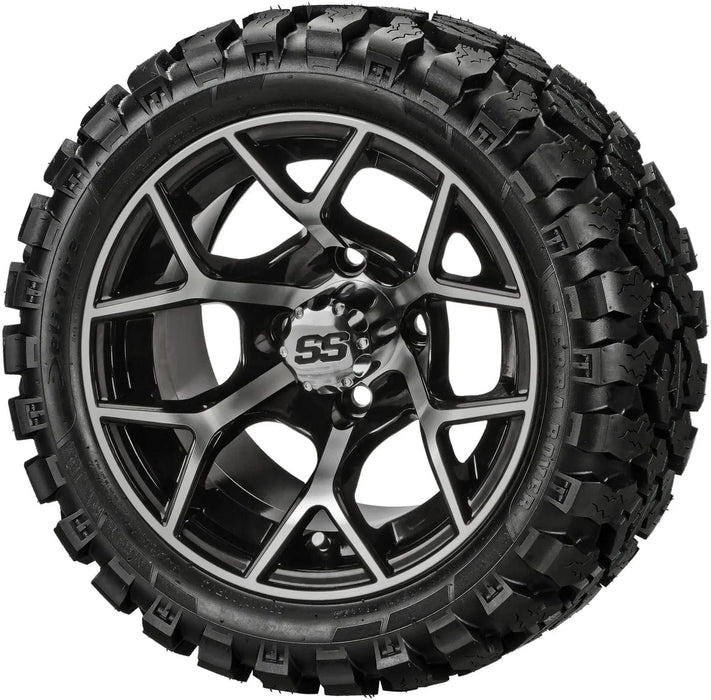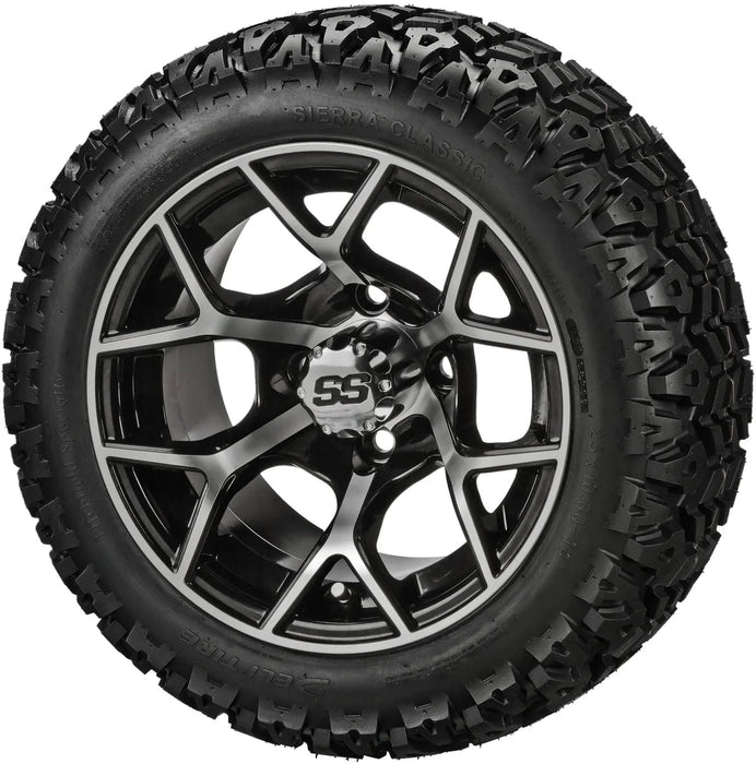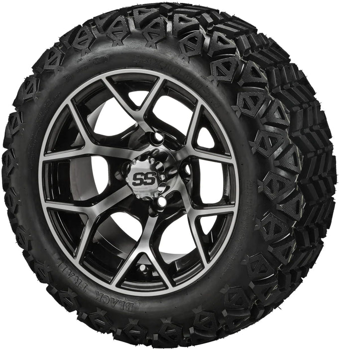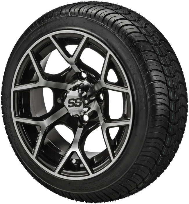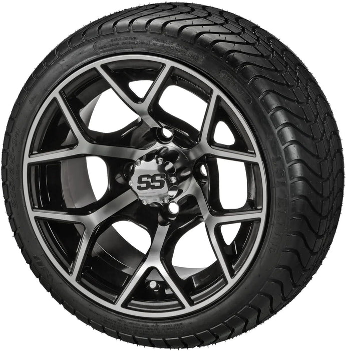 14" Rally Black/Machined Golf Cart Wheels and Golf Cart Tires Combo - Set of 4