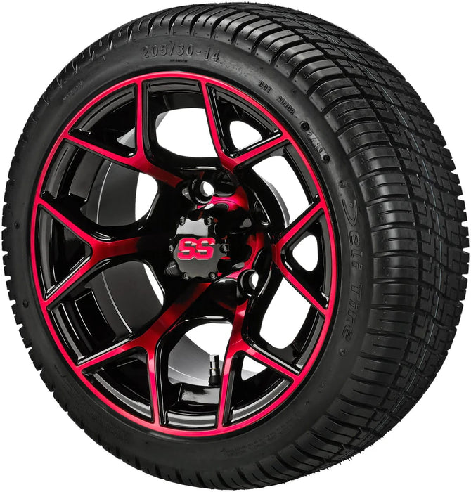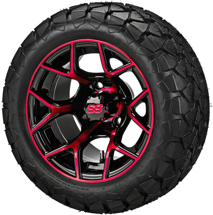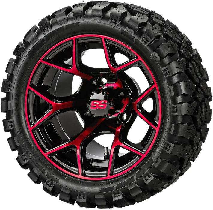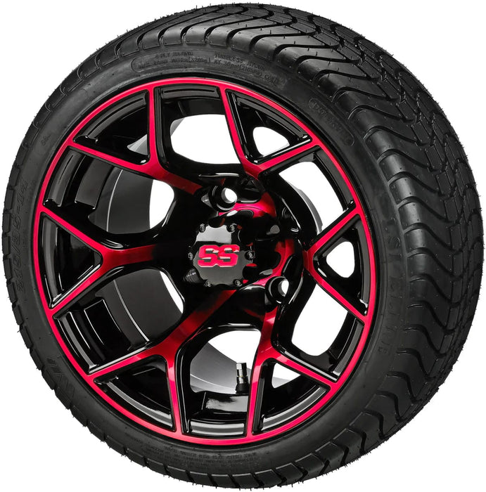 14" Rally Red/Black Golf Cart Wheels and Golf Cart Tires Combo - Set of 4